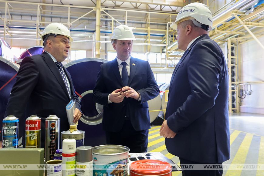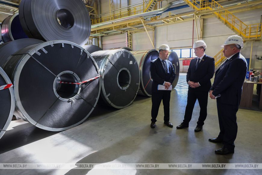 The tinplate production plant in Miory District is the only manufacturer of such products in the republic. Prime Minister of Belarus Aleksandr Turchin is visiting this enterprise as part of a working trip to Vitebsk Oblast. He is familiarizing himself with the company’s areas of activity and its innovative projects.