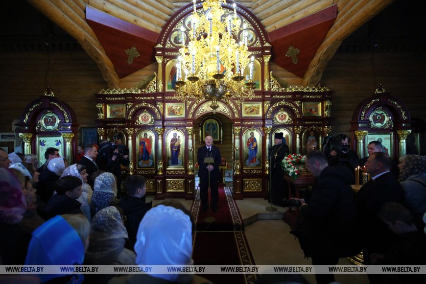 SHKLOV DISTRICT, 12 April (BelTA) - Belarusian President Aleksandr Lukashenko lit an Easter candle at the Church of St. Nicholas the Wonderworker in the agrotown of Yevdokimovichi in Shklov District on 12 April, BelTA has learned.