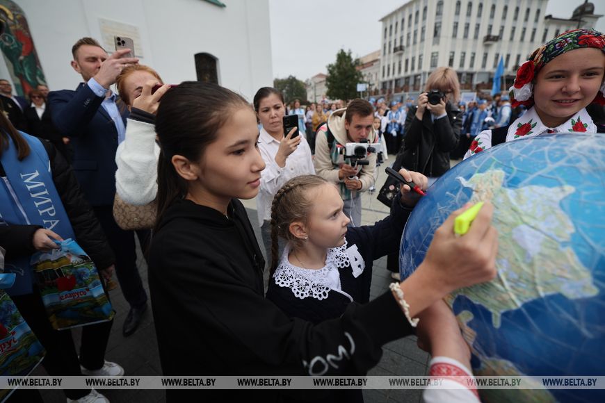 The first peace assembly Zvоn Mіru [Bell of Peace] was held in 2024 on Independence Square, near the symbolic landmark, the Belarusian Peace Bell. Hundreds of young peacebuilders took part in the event. Its purpose is to draw attention to the issues of war and peace, to foster a culture of peace among the younger generation, and to strengthen friendship and unity among people of different nationalities and cultures.