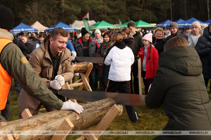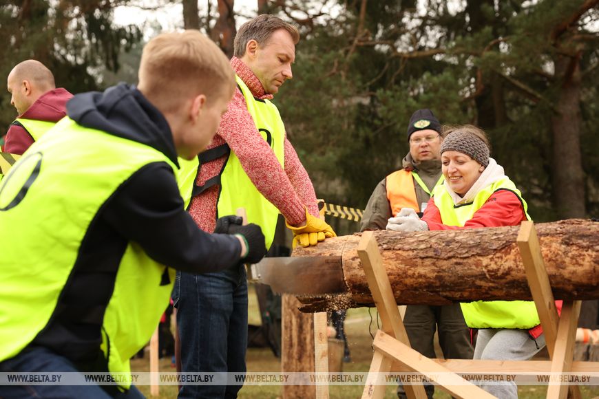 The fourth wood chopping challenge among media representatives was held on the shore of the Vyacha Reservoir in Minsk District on 7 November. The participants of the wood chopping challenge competed for the top spot in various disciplines, including firewood chopping, log cutting with an axe, presidential-style wood chopping, a relay race, and contests.