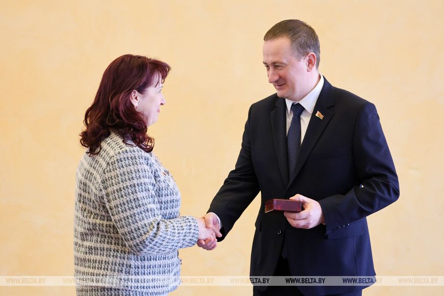 Yelena Semenkova, a teacher at the special needs school of Orsha District, co-author of textbooks for students with intellectual disabilities, was awarded the Medal For Labor Merits. She has worked in various positions in general secondary education and in the education department; this year she is celebrating 40 years of pedagogical activity. “Today's event is a special moment. It is honorable and responsible, as it encourages us to strive for new achievements, get charged with fresh ideas, and successfully implement them,” Yelena Semenkova noted. Photos by Maksim Gouchek/BelTA