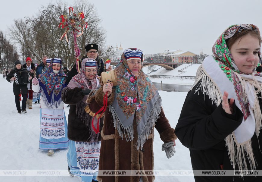 The city’s cultural and historical complex Golden Ring of Vitebsk “Dvina” hosted the Christmas festival Vitebsk Kaliady. Visitors took part in a variety of activities including a festive procession, folk dancing, and craft workshops. The event was organized by the Vitebsk City Hall and the Golden Ring of Vitebsk “Dvina” complex.