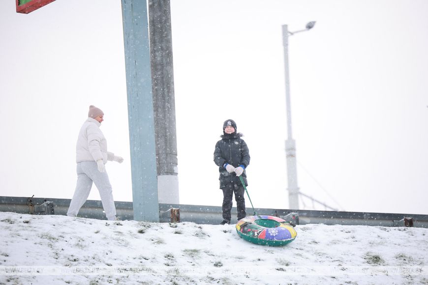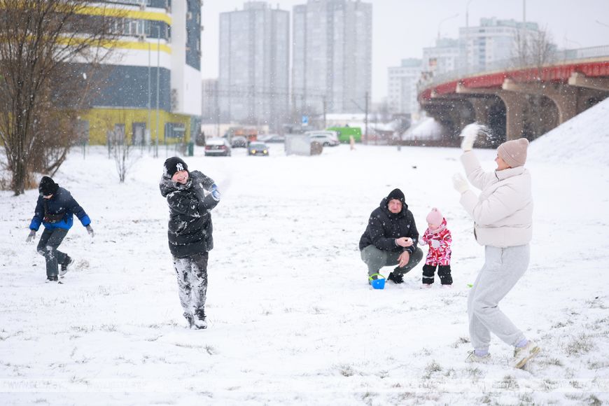 Snowy day lights up Minsk