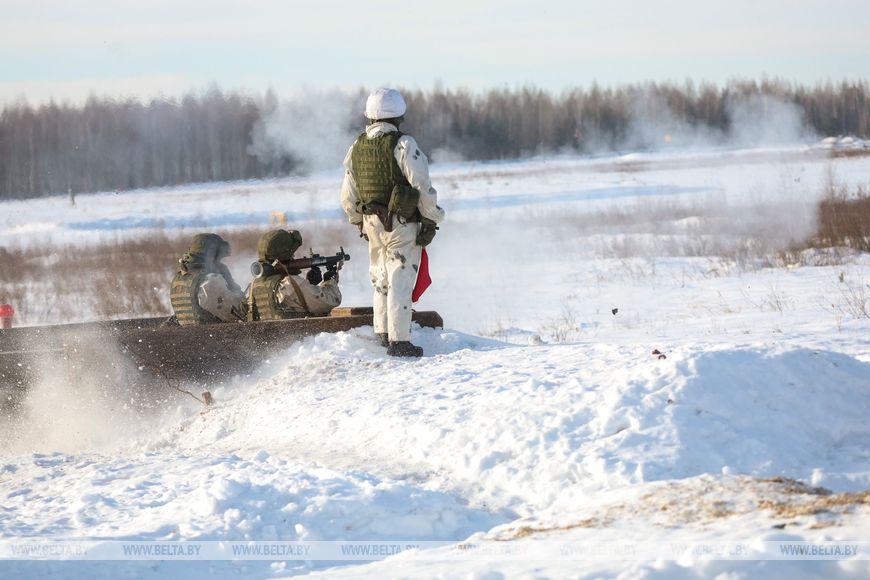 BORISOV DISTRICT, 17 February (BelTA) – The snap inspection of the Armed Forces authorized by the Belarus president continues. Soldiers of the 103rd Vitebsk Airborne Brigade and of the 120th Independent Guards Mechanized Brigade are busy firing various kinds of standalone weapons and weapons mounted on vehicles in the 227th combined-arms military training area, BelTA has learned.