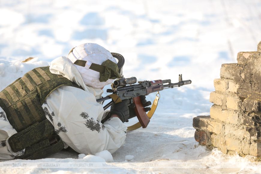 “Today we have firearm training qualifications. Military personnel from the 120th Independent Guards Mechanized Brigade are working alongside military personnel from the 103rd Vitebsk Airborne Brigade. We practice firing assault rifles and grenade launchers. The soldiers also use combat vehicles to perform qualification shoots. All of them are intent on demonstrating excellent results. The cold weather is having an effect. It is difficult for the military personnel due to bad weather but everyone is doing fine and meets qualifications despite the weather conditions. The military personnel are supplied with everything they need to operate in winter,” stressed Ilya Grishchenko, deputy commander for ideological training of a company of the 120th Independent Guards Mechanized Brigade.
