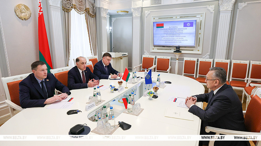 MINSK, 6 April (BelTA) – State Secretary of the Security Council of Belarus Aleksandr Volfovich met with Secretary General of the Collective Security Treaty Organization Taalatbek Masadykov on 6 April, BelTA has learned.